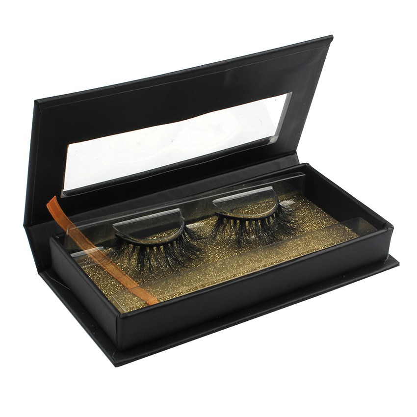 Custom black&gold gillter lavender trim window magnetic eyelash packaging with hot stamping your logo CMB075