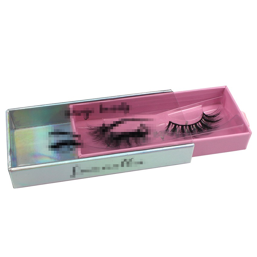 Custom luxury holographic silver&pink PVC magnetic eyelash packaging with hot stamping your logo CMB083