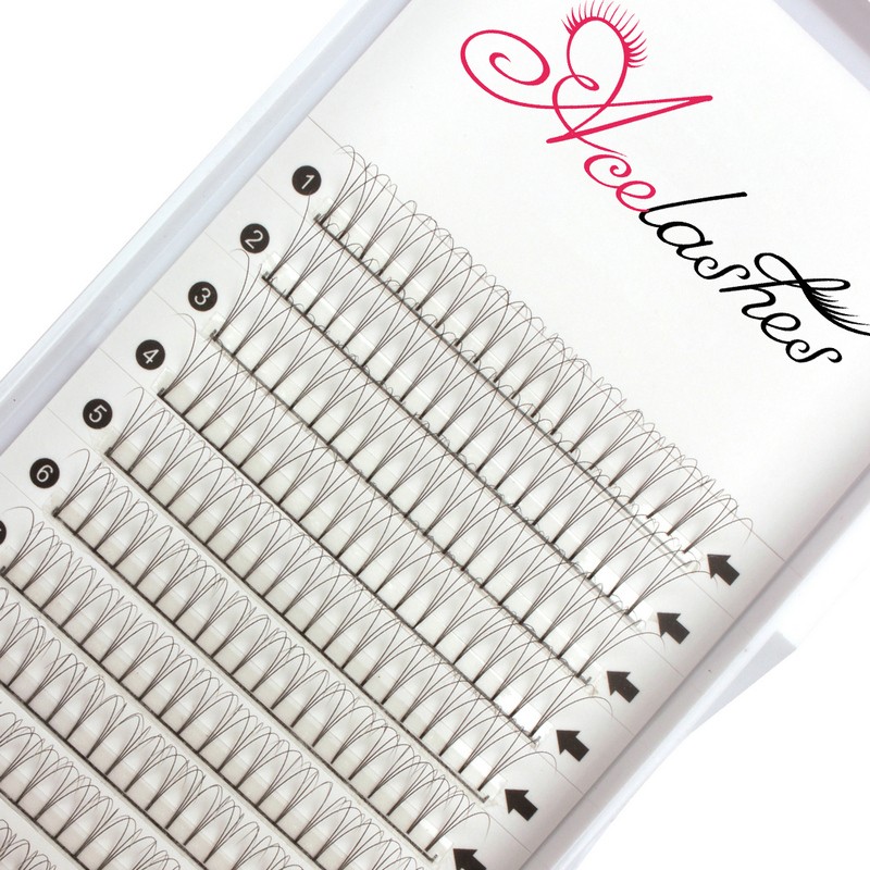 Curl: J, B,C, D Diameter: 0.07 Lashes per fan: 3 Available Lengths: 9-14mm Fans per row: 20/12 rows Applicability & lightweight pre-made volume fans to add extra volume to your classic sets, or to save time on your volume sets. These can be used by beginner or seasoned lash artists alike. Each tray contains 12 rows.